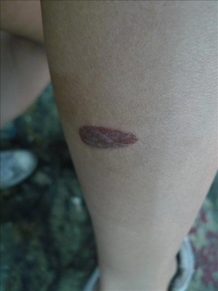 下車要轉身拿車廂裡的皮夾跟手機時被林胖機車的排氣管燙到