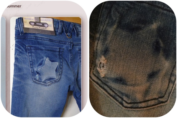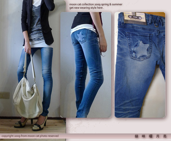 我買的這款"韓組 Funny Powder後口袋星星押痕刷色激瘦窄管褲"