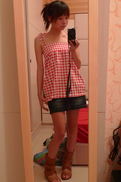 NO8609summer超可愛珠串綁繩蝴蝶結格紋背心款(紅)